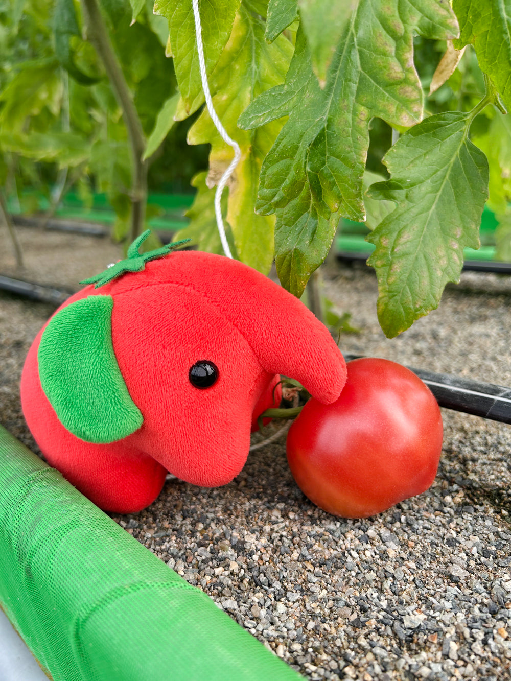 真っ赤なボディに、鮮やかな緑色の耳としっぽ。そして頭には…へた!?どこからどう見ても美味しそうなトマトなぞうさんは、日本郵便の社員さんが栽培から出荷までを行っているフルーツトマト「さやまる」をイメージして栽培(?)されました。なまえは「とまぞう」です!