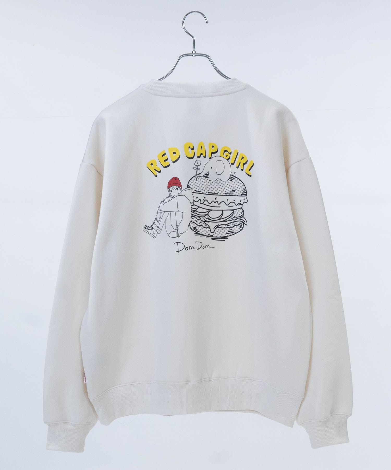 「RED CAP GIRL」と「ドムドムハンバーガー」のコラボスウェット。