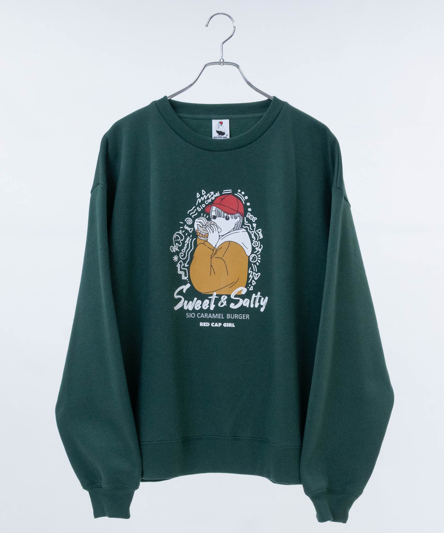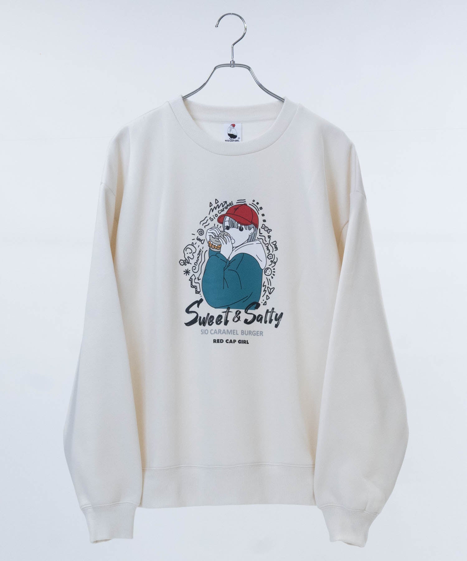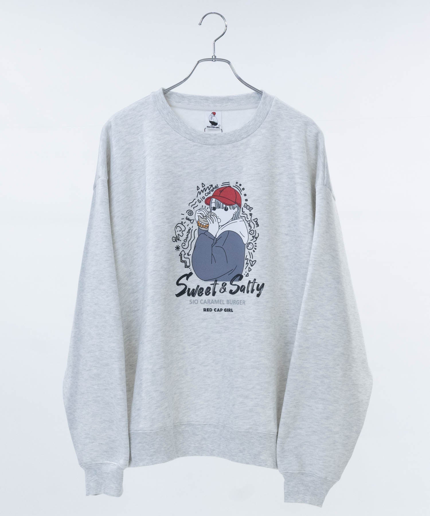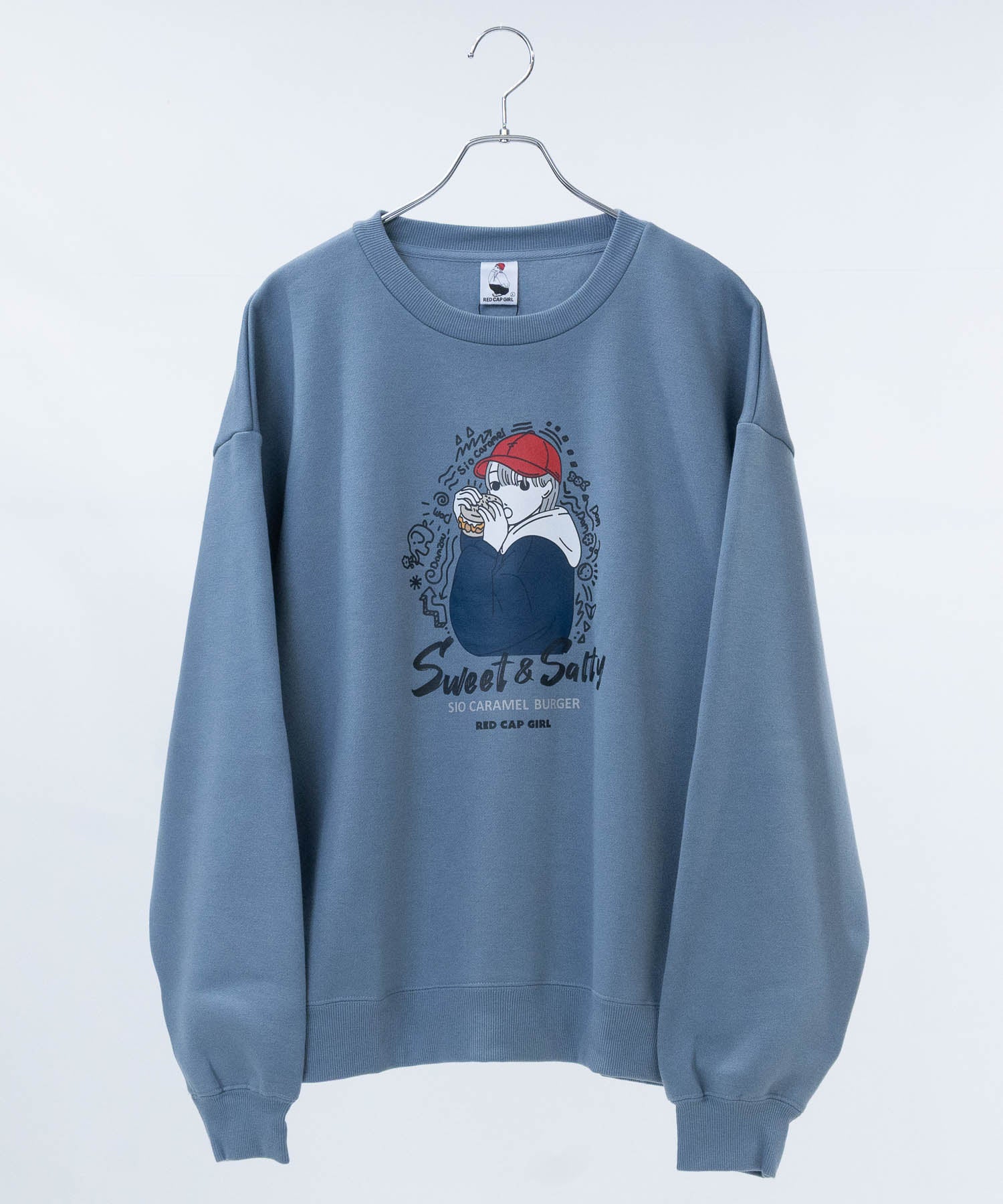 「RED CAP GIRL」と「ドムドムハンバーガー」のコラボスウェット。